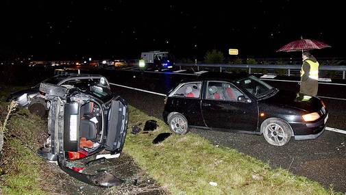 El reguero de gasoil provocó también que, al ir a socorrer, también un vehículo de la Guardia Civil se saliese de la autovía.